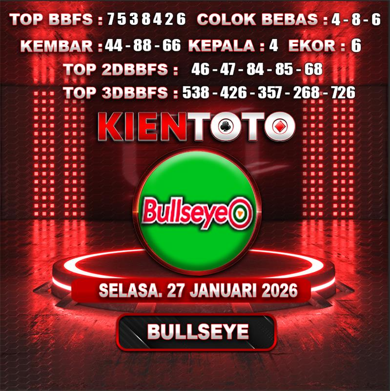 PREDIKSI TOGEL BULLSEYE 27 JANUARI 2026 Selamat Datang dan Selamat Bergabung di Situs Prediksi Togel Online. Permainan Togel Online saat ini telah menarik banyak perhatian para bettor di Indonesia. Jika dulunya Anda harus menikmati permainan togel melalui bandar togel darat, maka sekarang ini Anda hanya perlu mempercayakan KIENTOTO sebagai Bandar Togel Online Resmi dan Terpercaya. Melihat semakin tingginya minat para pecinta togel online, kami menyediakan Situs Prediksi Togel Online dan Bocoran Togel Jitu yang bisa Anda jadikan sebagai acuan sebelum melakukan pemasangan angka togel.