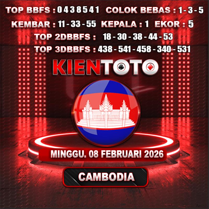 PREDIKSI TOGEL CAMBODIA 08 FEBRUARI 2026 Selamat Datang dan Selamat Bergabung di Situs Prediksi Togel Online. Permainan Togel Online saat ini telah menarik banyak perhatian para bettor di Indonesia. Jika dulunya Anda harus menikmati permainan togel melalui bandar togel darat, maka sekarang ini Anda hanya perlu mempercayakan KIENTOTO sebagai Bandar Togel Online Resmi dan Terpercaya. Melihat semakin tingginya minat para pecinta togel online, kami menyediakan Situs Prediksi Togel Online dan Bocoran Togel Jitu yang bisa Anda jadikan sebagai acuan sebelum melakukan pemasangan angka togel.