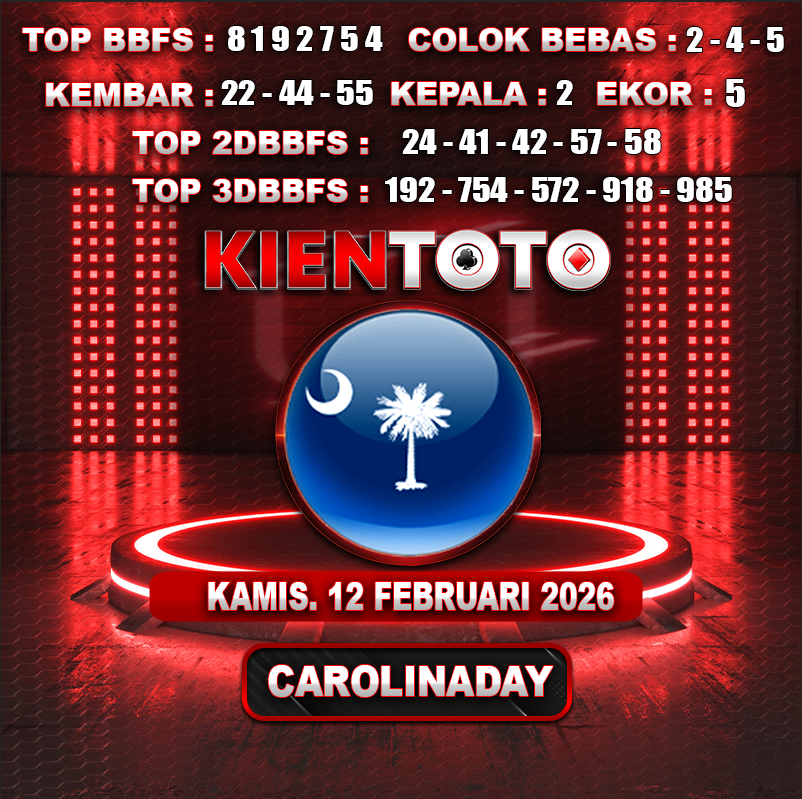 PREDIKSI TOGEL CAROLINA DAY 12 FEBRUARI 2026 Selamat Datang dan Selamat Bergabung di Situs Prediksi Togel Online. Permainan Togel Online saat ini telah menarik banyak perhatian para bettor di Indonesia. Jika dulunya Anda harus menikmati permainan togel melalui bandar togel darat, maka sekarang ini Anda hanya perlu mempercayakan KIENTOTO sebagai Bandar Togel Online Resmi dan Terpercaya. Melihat semakin tingginya minat para pecinta togel online, kami menyediakan Situs Prediksi Togel Online dan Bocoran Togel Jitu yang bisa Anda jadikan sebagai acuan sebelum melakukan pemasangan angka togel.