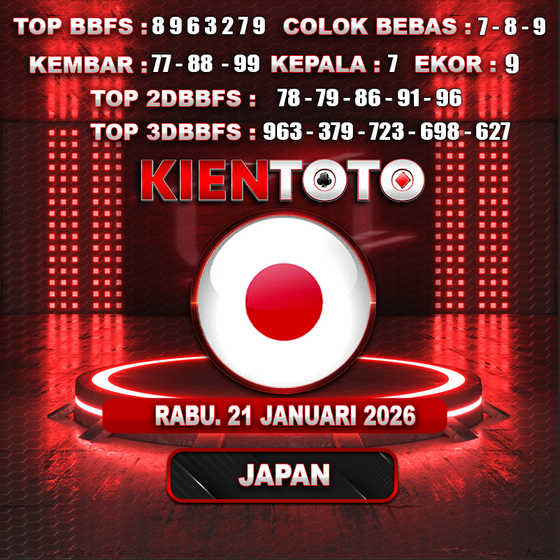 PREDIKSI TOGEL JAPAN 21 JANUARI 2026 Selamat Datang dan Selamat Bergabung di Situs Prediksi Togel Online. Permainan Togel Online saat ini telah menarik banyak perhatian para bettor di Indonesia. Jika dulunya Anda harus menikmati permainan togel melalui bandar togel darat, maka sekarang ini Anda hanya perlu mempercayakan KIENTOTO sebagai Bandar Togel Online Resmi dan Terpercaya. Melihat semakin tingginya minat para pecinta togel online, kami menyediakan Situs Prediksi Togel Online dan Bocoran Togel Jitu yang bisa Anda jadikan sebagai acuan sebelum melakukan pemasangan angka togel.