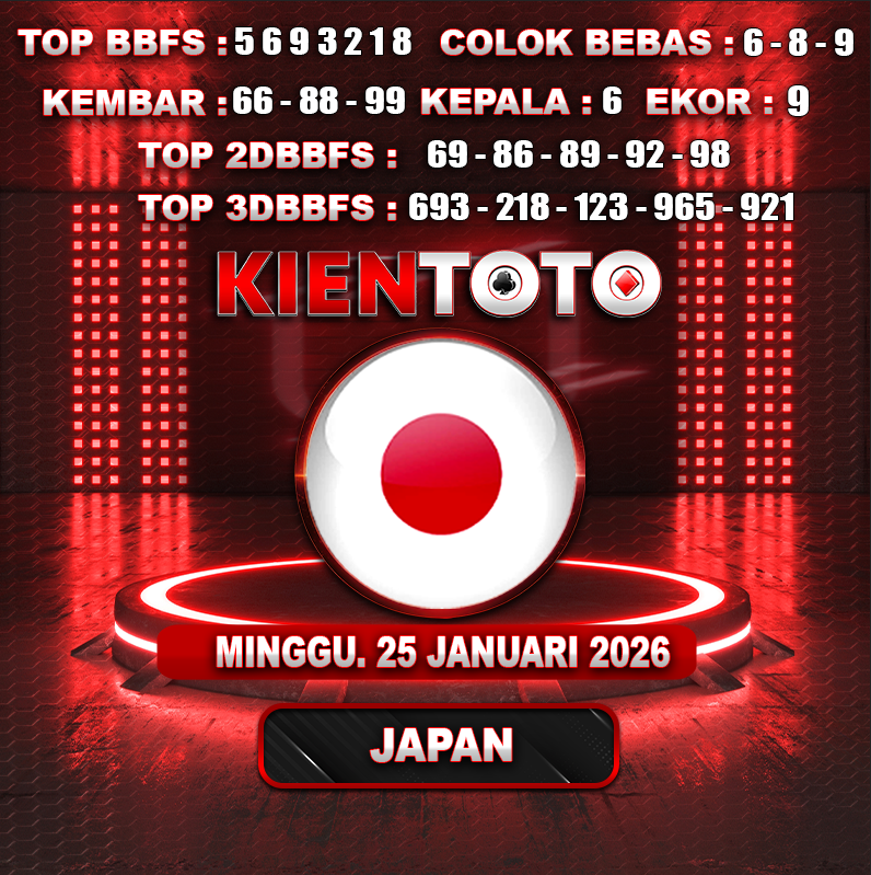 PREDIKSI TOGEL JAPAN 25 JANUARI 2026 Selamat Datang dan Selamat Bergabung di Situs Prediksi Togel Online. Permainan Togel Online saat ini telah menarik banyak perhatian para bettor di Indonesia. Jika dulunya Anda harus menikmati permainan togel melalui bandar togel darat, maka sekarang ini Anda hanya perlu mempercayakan KIENTOTO sebagai Bandar Togel Online Resmi dan Terpercaya. Melihat semakin tingginya minat para pecinta togel online, kami menyediakan Situs Prediksi Togel Online dan Bocoran Togel Jitu yang bisa Anda jadikan sebagai acuan sebelum melakukan pemasangan angka togel.