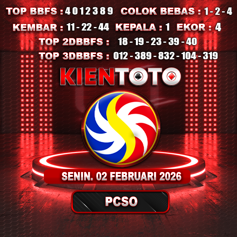 PREDIKSI TOGEL PCSO 03 FEBRUARI 2026 Selamat Datang dan Selamat Bergabung di Situs Prediksi Togel Online. Permainan Togel Online saat ini telah menarik banyak perhatian para bettor di Indonesia. Jika dulunya Anda harus menikmati permainan togel melalui bandar togel darat, maka sekarang ini Anda hanya perlu mempercayakan KIENTOTO sebagai Bandar Togel Online Resmi dan Terpercaya. Melihat semakin tingginya minat para pecinta togel online, kami menyediakan Situs Prediksi Togel Online dan Bocoran Togel Jitu yang bisa Anda jadikan sebagai acuan sebelum melakukan pemasangan angka togel.