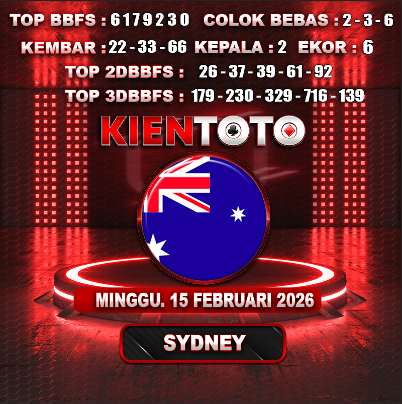 PREDIKSI TOGEL SYDNEY 15 FEBRUARI 2026 Selamat Datang dan Selamat Bergabung di Situs Prediksi Togel Online. Permainan Togel Online saat ini telah menarik banyak perhatian para bettor di Indonesia. Jika dulunya Anda harus menikmati permainan togel melalui bandar togel darat, maka sekarang ini Anda hanya perlu mempercayakan KIENTOTO sebagai Bandar Togel Online Resmi dan Terpercaya. Melihat semakin tingginya minat para pecinta togel online, kami menyediakan Situs Prediksi Togel Online dan Bocoran Togel Jitu yang bisa Anda jadikan sebagai acuan sebelum melakukan pemasangan angka togel.
