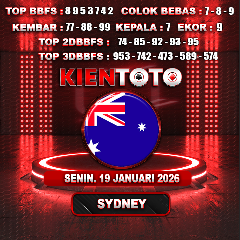 PREDIKSI TOGEL SYDNEY 19 JANUARI 2026 Selamat Datang dan Selamat Bergabung di Situs Prediksi Togel Online. Permainan Togel Online saat ini telah menarik banyak perhatian para bettor di Indonesia. Jika dulunya Anda harus menikmati permainan togel melalui bandar togel darat, maka sekarang ini Anda hanya perlu mempercayakan KIENTOTO sebagai Bandar Togel Online Resmi dan Terpercaya. Melihat semakin tingginya minat para pecinta togel online, kami menyediakan Situs Prediksi Togel Online dan Bocoran Togel Jitu yang bisa Anda jadikan sebagai acuan sebelum melakukan pemasangan angka togel.