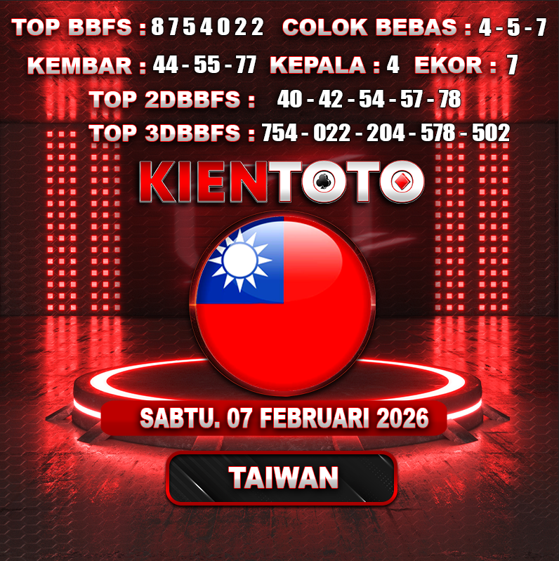 PREDIKSI TOGEL TAIWAN 07 FEBRUARI 2026 Selamat Datang dan Selamat Bergabung di Situs Prediksi Togel Online. Permainan Togel Online saat ini telah menarik banyak perhatian para bettor di Indonesia. Jika dulunya Anda harus menikmati permainan togel melalui bandar togel darat, maka sekarang ini Anda hanya perlu mempercayakan KIENTOTO sebagai Bandar Togel Online Resmi dan Terpercaya. Melihat semakin tingginya minat para pecinta togel online, kami menyediakan Situs Prediksi Togel Online dan Bocoran Togel Jitu yang bisa Anda jadikan sebagai acuan sebelum melakukan pemasangan angka togel.